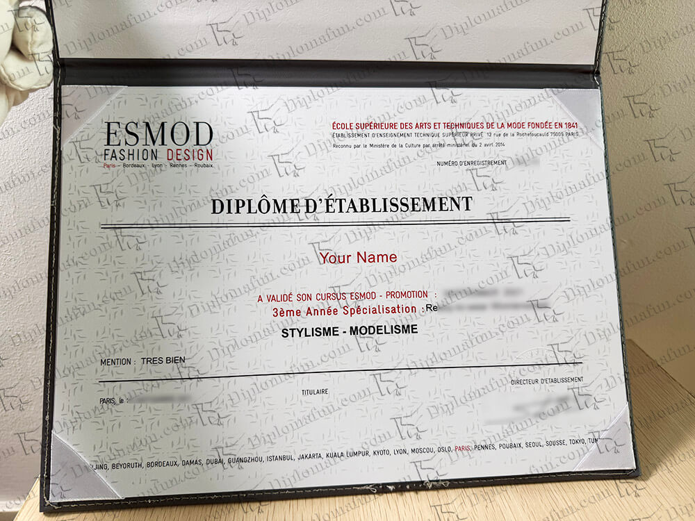 法国高级时装学院(ESMOD INTERNATIONAL,简称ESMOD,又称法国ESMOD国际服装设计学院)是一所享有盛誉的时装设计学校,成立于1841年,总部位于法国巴黎。购买ESMOD毕业证,复刻ESMOD文凭证书,ESMOD高仿文凭,都是挂科后的补救品。专业的法国毕业证购买公司,在线解决法国大学学历文凭证书问题。除了办理ESMOD毕业证外,还可以提供法国大学成绩单购买服务,及法国留信认证咨询,法国大学学历学位认证咨询。法国ESMOD国际服装设计学院是全球首家专注于时装设计和时尚管理的教育机构,也是世界上最古老的时装学校之一。