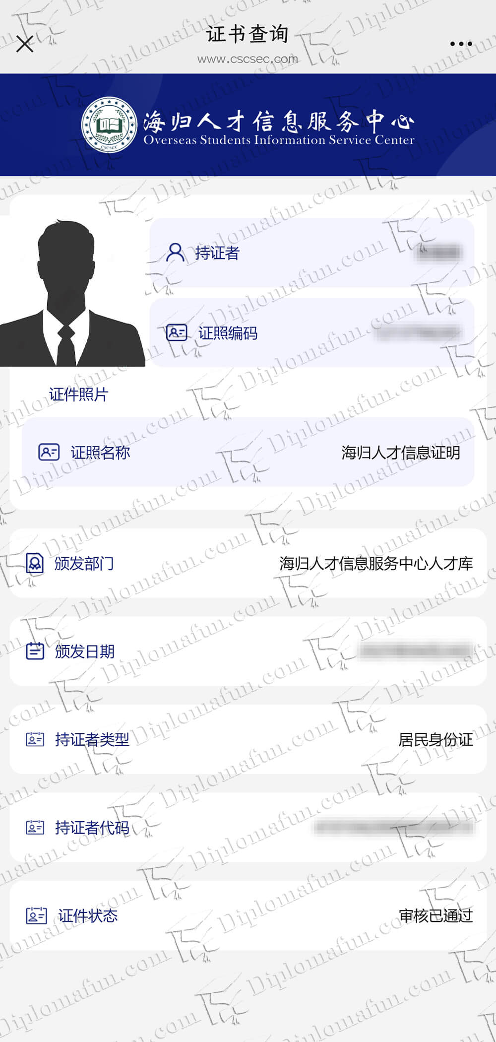 完成审核后,可以在官网https://www.cscsec.com/checkonline.html查验认证结果。它的查验结果,仅供用人单位作为留学生入职的参考,查询海归人才信息服务中心出具的结果时,需要输入个人姓名,和留才认证编号(即:认证人编号)。