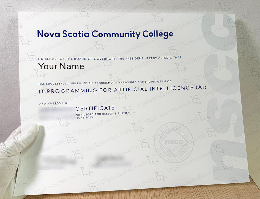 新斯科舍社区学院,英文简称NSCC。它是加拿大一所社区学院,有130个专业,和13个校区。学校热门专业有计算机专业,园艺学,焊接技术等。它主要提供证书,文凭,以及升学衔接课程。学院的整体就业率很高,高达90%左右。挂科后,如果考虑入手高仿新斯科舍社区学院文凭,那么本文一定要读完。当无法拿到学校官方真实毕业证书。在线定制新斯科舍社区学院证书,我们提供了一种方式。新斯科舍社区学院毕业证购买,就找专业加拿大学院文凭制作商。原版品质,外观和真实和真实的一样。肉眼无法区分它的真假。加急办理新斯科舍社区学院学历,可以用来应对家人询问。同时,也可以用来应付中小企业入职。关于它的毕业证尺寸,工艺,制作时间。以及办理新斯科舍社区学院需要的时间,流程等问题。我们在下面会有解答。高仿毕业证,并不代表具有真实的学历。我们只是提供一种收藏为主的证书,来解决我们学历尴尬问题。2026年最新新斯科舍社区学院文凭样本,可以和我们客服查看。