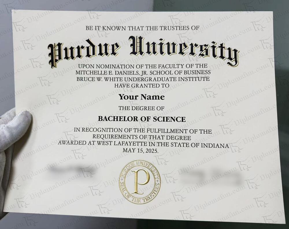 如图,普渡大学毕业证背面,是有凹陷,所以正面才会凸起。首先,普渡大学毕业证书上的学校名,是凸起效果。其次,在毕业证书正文的字母“P”及外圈,也是凸起工艺。普渡大学毕业证书上,会体现就读专业的院系,学生姓名,学位名称,及毕业时间。普渡大学毕业证大小是美国letter尺寸,并且文凭纸张是淡黄色,厚度在180克一平方米。在工科领域,23位校友参与阿波罗登月计划,工业工程(全美第2)、机械工程(第7)等专业表现突出。在计算机科学领域,人工智能专业首次进入全球前20,网络安全排名第6。值得一提的是,化学系教授赫伯特·布朗曾获诺贝尔化学奖。购买普渡大学毕业证,请认准专业的大学毕业证购买公司,加急定制普渡大学毕业证书。原版复刻,流程透明,交易有保障。回国发展,可以办理海牙认证,办理留信认证,办理留才认证,真实存档可查。
