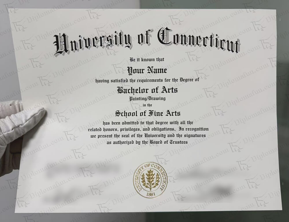 如何在线办理康涅狄格大学文凭?加急定制康涅狄格大学毕业证最快几天?康涅狄格大学高仿文凭与学校原版一致,在外观和细节上一比一还原。挂科后可以快速补办康涅狄格大学毕业证,同可以购买康涅狄格大学成绩单。美国在线购买康涅狄格大学文凭很简单,只需要按要求线上下单即可。办理康涅狄格大学文凭,购买康涅狄格大学文凭,购买康涅狄格大学毕业证,办理康涅狄格大学毕业证,就找专业的美国文凭办理公司(diplomafun.com)在线提供最优质的办理服务,丰富的操作经验,尽最大程度还原学校原版文凭。康涅狄格大学(University of Connecticut ,简称UConn)是一所位于美国康涅狄格州的公立研究型大学。UConn成立于1881年,是美国最著名的公立研究型大学之一。UConn的主校区位于康涅狄格州的斯托尔斯,该校区占地约5,300英亩,是美国最大的校园之一。