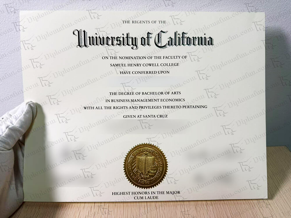 加州大学圣克鲁斯分校,英文University of California, Santa Cruz。简称UC Santa Cruz或UCSC。中文翻译过来,是加州大学克鲁兹分校,加州大学圣克鲁兹分校。它和加州大学伯克利分校,加州大学戴维斯分校,加州大学尔湾分校,加州大学洛杉矶分校,加州大学默塞德分校,加州大学里河滨分校,加州大学圣地亚哥分校,加州大学旧金山分校,加州大学圣巴巴拉分校共同组成了UC大学系统。UC Santa Cruz毕业证,UCSC文凭,通常需要完成相应专业的学分后,才可以拿到毕业证。在美国怎样定制圣克鲁兹大学毕业证?加州大学圣克鲁斯大学文凭长什么样子?加州圣克鲁兹大学毕业证纸张怎么样?购买加州大学圣克鲁斯分校文凭,办理加州大学圣克鲁斯分校文凭,加州大学圣克鲁斯分校毕业证购买,购买加州大学圣克鲁斯分校毕业证。就找专业的美国大学毕业证办理公司来完成,没事学年不同学位的版本,有所不同,原版一比一仿制。